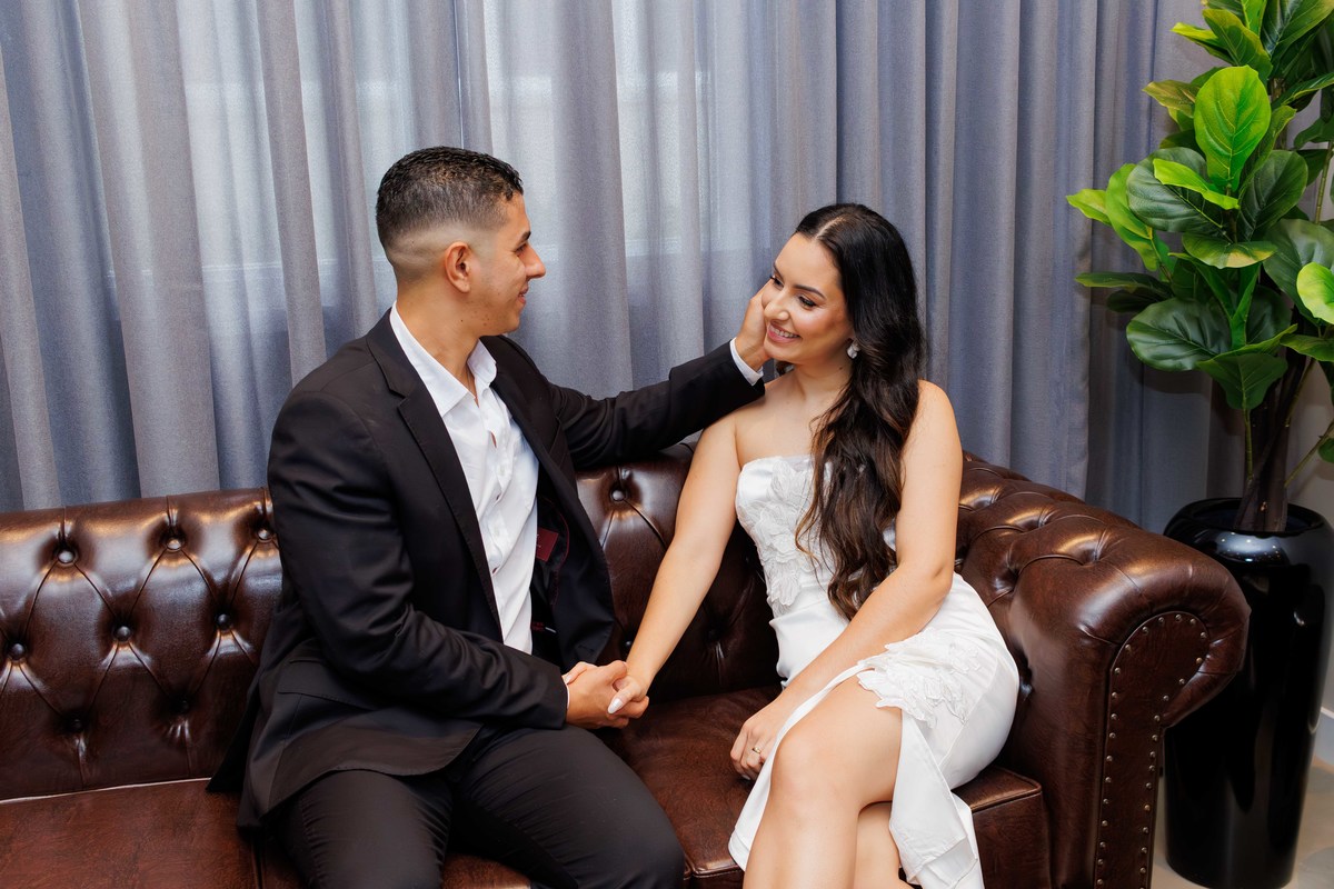 Ensaio Pós Wedding realizado em frente ao cartório de Guarulhos e no futuro apartamento do casal.